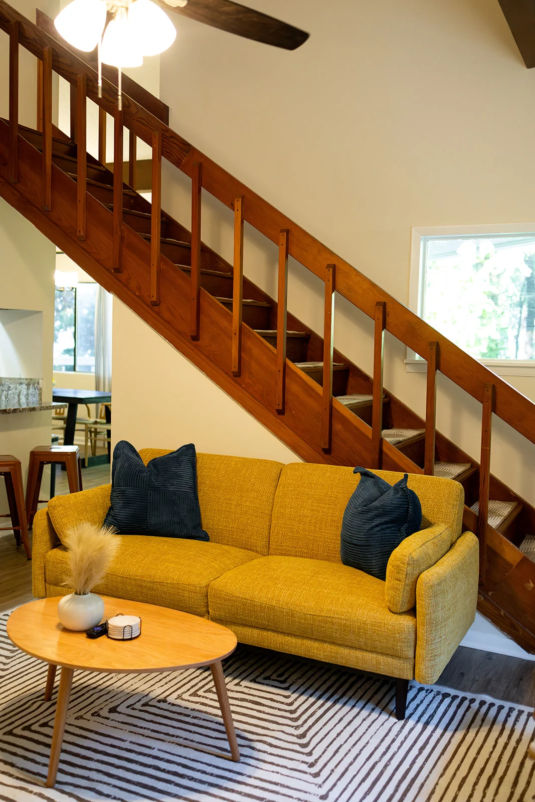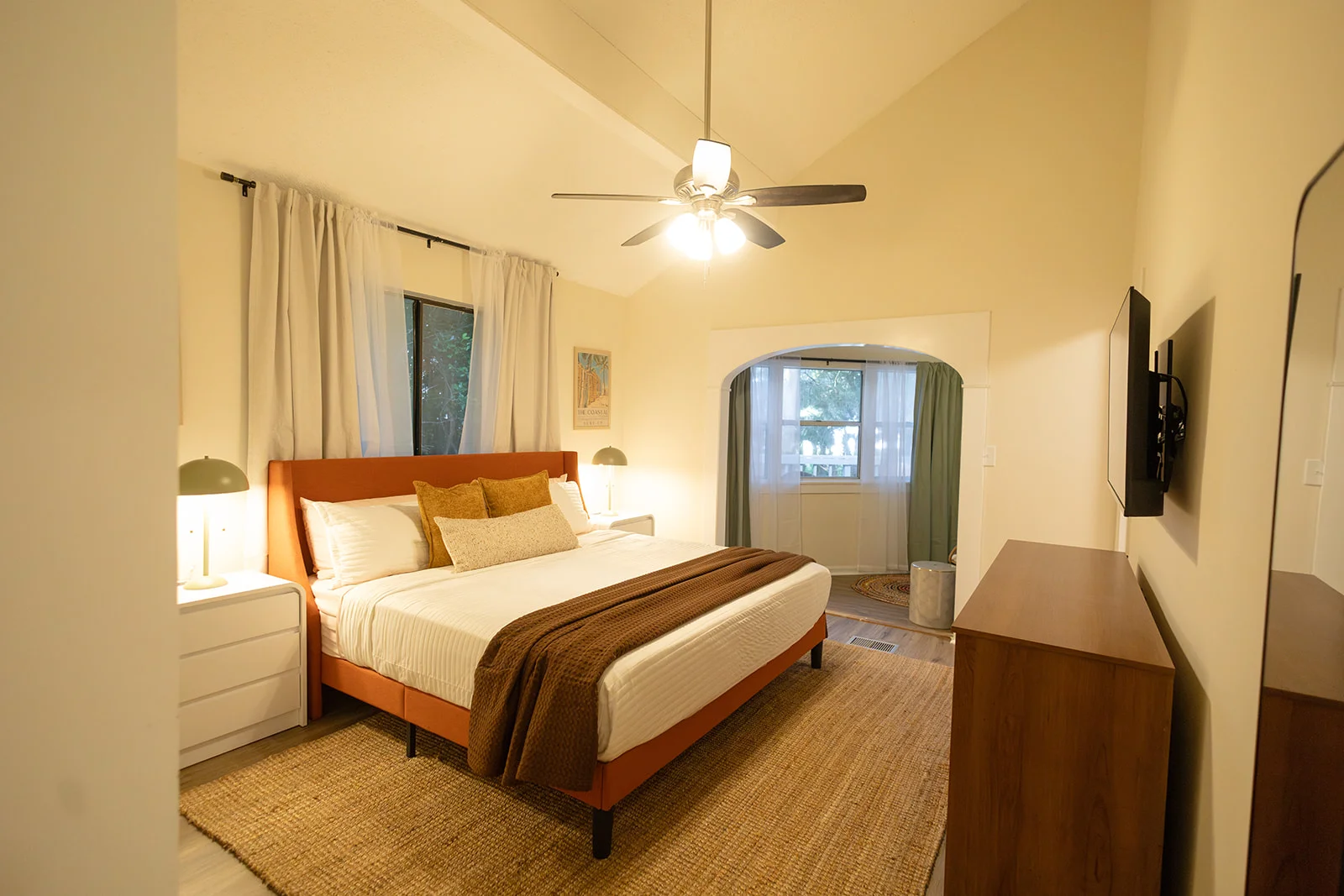 Bluff Haus is a distinctive riverfront retreat in Jacksonville designed to host up to 7 guests in a setting inspired by the magic of a modern treehouse. Elevated sightlines and nature-forward design elements create a seamless connection to the surrounding landscape, while warm woods, layered textures, and organic tones bring the outdoors in. Thoughtful spatial flow and cozy gathering areas make the home feel both adventurous and intimate—like a refined escape tucked into the treetops. The result is a one-of-a-kind stay that blends architectural character, waterfront serenity, and elevated comfort.